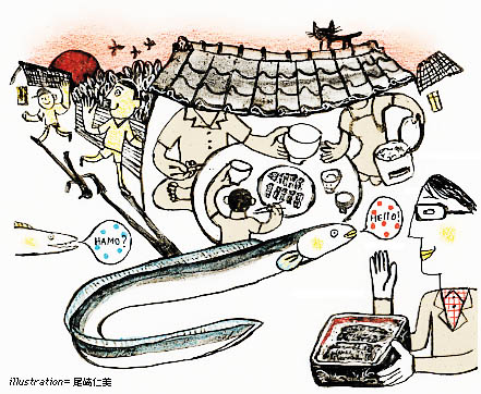 練馬の桜台で借家住まいしていた昭和30年代初頭のこと。ものごころがついたばかりの頃のことである。 当時の食卓は、いくら父が勤務医をしていたとはいえ、そうそう豪華なものが並ぶことはなかった。 魚でいえば、朝はメザシ。夕ごはんの私の好物は鯖の煮つけであった。 そんななか、鰻の蒲焼が食卓に登ることは滅多になかったが、それでも夏になると食べた。 「土用の丑の日」の力は絶大である。 鰻の蒲焼を食べるのは、一種の家族の儀式のようなものであった。 スキヤキ鍋を囲むのに優るとも劣らない、食卓に対する集中力があった。 何しろ、父や母の笑顔が違った。 「ウナギがこのくらいで、ごはんはこのくらい」と、わずかな鰻の切れ端に対してモリモリとお米を食べる父から、お腹を膨らますために、いたずらにウナギを食べてはならないと教わるのだが、そのずるそうな笑顔から、美味しいからといってバクバクと子供にウナギを食べられてはかなわないという、父の危惧を読み取れないほど、子供は鈍感ではなかった。 あの時の鰻の蒲焼の味が記憶されていないのは、やはり、ウナギとご飯の分量を注意しながら、おそるおそる食べていたからであろうか? 我が家は島根県の松江の出身で母も実家は出雲大社。鰻のさばき方、焼き方は関西流である。父が医院を継ぐ為、松江に帰ってからも、鰻を食べる時には蒲焼の作り方について、「東の蒸してから焼くのに対し、西は蒸さない」の話を死ぬまで言っていた。 父は蒸さないのを好んだが、私は断然関東風が好みである。 幼い時に味わえなかった分、取り戻さなければならないのだ。 第一、西の鰻は小骨が多すぎる…。 いやいや、これは鱧…ハモの話。 松江に帰った夏、夕食は鰻の蒲焼だった。 これが、妙に小骨が多く、身もなんだかアッサリしている。 父は「鰻の蒲焼だ」と言い張るのだが、母によってウナギではなくハモであることが明かされ、またしても子供を策略に落し入れようとしていた計画がバレた。 鱧ならば、やはり「梅肉和え」が好みで、蒲焼で食べようとは思わない。 |