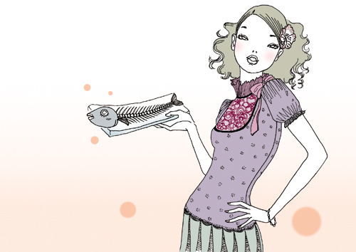 「魚をきれいに食べる」というのは、その筆頭に挙げてもいい。子どものころは、魚の味自体も好きじゃなかったし、なにより食べるのが難しいので苦手だった。でも、大人になればおいしくなって、食べるのもうまくなると思っていた。 幸い、だんだんと味は好きになった。だけど、食べ方はへたなまま、どこまで食べていいかさえわからない。気づいてみれば当然のことで、手の作業なのだから訓練というか練習の積み重ねでできるようになることなのだった。年齢ではなく。となると、だれかに教えてもらわなければならないのだけど、教えるというのは根気がいることだ。両親は、魚を食べたがらないわたしにいらいらしながら教えるよりは、最初から身だけを取る、またはメニューに入れないほうを選んだ。 もちろんいい年をして、親のせいにばかりしてもいられず、簡単なものなら料理もできるようになったし人に驚かれない程度にはつくろって食べることもできるようになった。アジは、子どもの頃から好きな数少ない魚だったし、比較的身を取るのも料理もしやすいので、わたしにとっては「親切で優しい魚」だ。見た目もかわいいし。梅干しを入れて煮たのが、人にも出せる料理になった。 だけど、うまく食べられないコンプレックスはそのままで、女性誌でモテる条件を聞かれたとき「魚をきれいに食べられる人」と答えてしまった。男でも女でも、お皿の上のきれいな骨を見ると、なぜか色気があると思ってしまう。 |