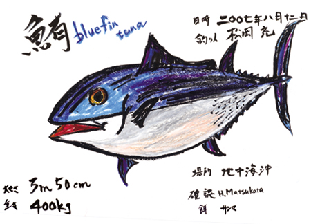 魚と一言で言っても、その種類は約3万種類。そのうち何種類を人類が食しているかは知りませんが、せめてスーパーで売っているもの位は、味と名前と姿を理解していないと世界一魚を食している日本人として恥ずかしい気がします。ちなみに、僕はいろんな釣りをしますが、釣った魚は必ずいただく、もしくは生きている間に逃がす、というのがポリシーです。そんな僕がいつかは釣ってみたいと思う憧れの魚がいます。そう『マグロ』です。 いつかは自分で釣り上げ、気の合う仲間達と思いっきり喰らいたいっ!釣り人としての夢です。マグロは皆大好きだから、切り身でも殆どの人が見ればわかる魚の代表です。しかし、その種類を言える人は案外少ないのではないでしょうか? ではここで、マグロに関する豆知識を少々。 まず、海のダイヤモンドと言われる、マグロの王様はクロマグロ。別名、本マグロ。とても稀少且つおいしく高価で、他のどのマグロも太刀打ち出来ません。文字どおり本物。キハダマグロ、これは読んで字のごとく黄色い肌のマグロ。メバチマグロは、目がクルンと大きい。ちなみにカジキマグロは名前に反してマグロの種類ではありません。ビンチョウマグロと言う安価で美味しいマグロもいます。回転寿司屋でビントロが回っていたら是非一度御賞味下さい。美味い上に安い! マグロについてもう一つ。マグロは回遊魚です。泳ぎ回る為に生まれて来ているのです。休まず常に前に進むのです。それも、誰よりも速く。速く泳ぐ為、身体の形も進化し、まるで弾丸のようです。ウロコさえなくしました。水の抵抗をなくす為です。寝ている時も泳いでます。何がそんなにマグロを前に進めるのでしょうか? それは、生きる為です。止まると、マグロは呼吸が出来ません。止まると死んでしまうのです。なのに僕達は無理矢理止めて、テーブルに並べるのです。だから、皆さん絶対に残さないで下さい。マグロに失礼です。マグロ料理が大好きな僕達日本人は、マグロを食するかわりに、マグロの人生のテーマを受け継ぐべきです。何があっても前に進むマグロの『全開ポジティブ人生』をです。 さぁ、皆さんマグロを食べたなら、いつもの2倍はテンポアップして、人生と言う荒波を泳いで行こうではありませんか!