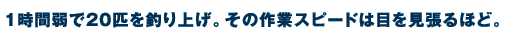 | 3 失神気味のまぐろは暴れることなく釣り上げられます。その間約5秒。 | 4