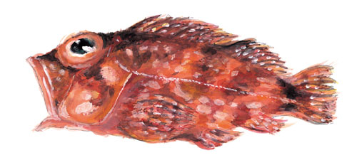 それほど新鮮な、朝どりカサゴ。料理雑誌によれば、塩を水で洗い流した後、さらに熱湯をかけ、臭みを抜くのだが、その必要もない気がして、省略。出来た煮付けは、臭みなどまったくなく、おいしさに目が飛び出そう……それは、カサゴの顔でした。私の顔は、ほとんどカサゴになっていました。
