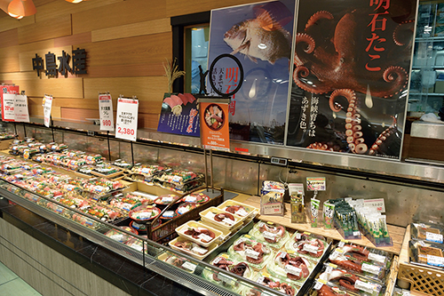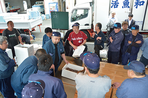 本州と淡路島の間の明石海峡は潮流が速く、複雑の地形になっており、日本有数の豊かな漁場になっているので、美味しい魚が揚がって当たり前なのです。弊社の関西地区の店舗でも大変好評をいただいております。特に、近場の大丸神戸店の鮮魚売場には、11時半にセリ落とされた魚が1時半に到着し、それを待ちかねていらしたお客様によって、瞬く間に売れていく様子は、魚屋冥利に尽きるものがあります。 ![]() |