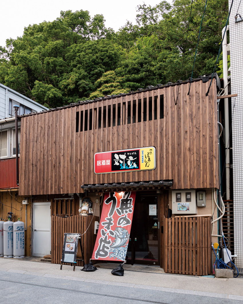 開店から今年で9年目となる居酒屋「対玄」は、穴子以外の魚はほぼすべて、店主の大崎昌彦さんやスタッフたち自身が釣ったものを提供するという魚自慢の店。この時期はノドグロ、イサキ、マハタ、グレなどがケースに並び、季節ごとの魚を抜群の鮮度で味わうことができる。 穴子は通年で、活魚を地元の業者から仕入れ、大崎さんが〆め、しっかりと血抜きを行う。観光客と地元客の割合は半々くらい。穴子を目当てに店を訪れる観光客も多い。 この店に来たらぜひトライしてみたいのが「穴子ラーメン」。 地元産のどんこと、炙った穴子の頭と骨でとった出汁は、コクがありながらさっぱりとしている。冷ますとスープが固まるほどコラーゲンたっぷりなので、美肌効果も期待できそう。 |