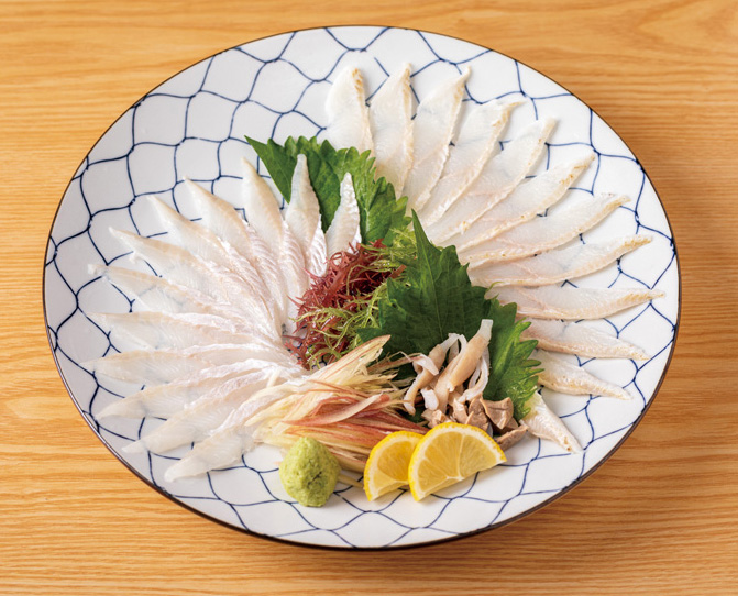 | 刺身(¥1,200)は生と炙しの2種。しゃぶしゃぶより薄くつくってある。 |