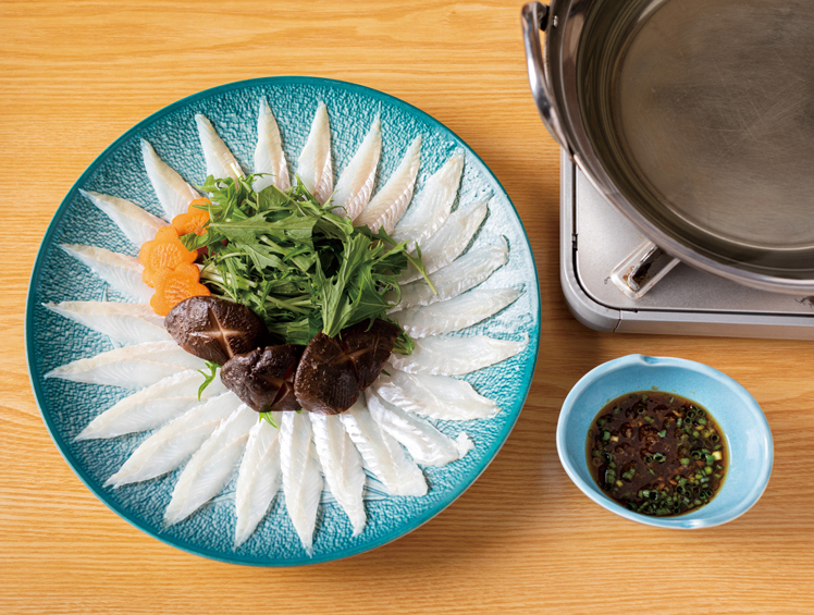 | しゃぶしゃぶ(2人前より・時価・要予約)はお湯にくぐらせてポン酢で。 |