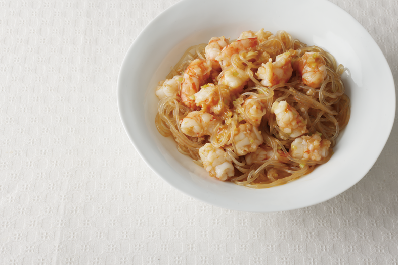 1. えびは頭と尾を取り、殻をむき、背わたを取り、2〜3等分に切る 2. 煮汁をつくる。鍋に半量のサラダ油を熱し、頭と殻、尾を入れる。へらで頭をしっかり潰しながら、1〜2分炒める。えびの色が赤く変わり、香りが立ってきたら酒を入れ、ひと煮立ちさせる。水を加え、沸いたら弱火にし、15分ほど煮出して火を止める。冷めたら、へらでぎゅっと押しながら漉す。 3. フライパンに残りのサラダ油、しょうが、にんにく、豆板醤を入れ、中火にかける。香りが立ってきたら、2.の煮汁を1.5カップ分(少なければ水を足す)加え、春雨を入れて蓋をし、春雨が好みの固さになるまで煮る。 4. 3.にしょうゆと1.のえびの身を入れ、軽く火を通す。好みで水溶き片栗粉で少しとろみをつけ、仕上げにねぎ、ごま油を入れて混ぜる。 |