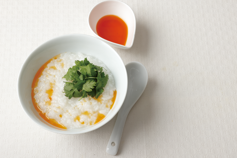 1. えびオイルをつくる。鍋に油大さじ2(30 ml)とえびの頭や殻を入れ、中火にかける。へらで頭や殻を細かくつぶしながら加熱する。色が赤くなり、香りが立ってきたら、しょうが、残りの油を入れる。油が温まってきたら、ごく弱火で15分ほど加熱する。火を止めて粗熱を取り、ざるで漉す。冷めたら保存容器に入れ、冷蔵で保存。長期保存の場合は、香りを保つために冷凍庫で約1ヶ月が目安。 2. 米を洗い、分量の水に30分ほどつける。ねぎ、しょうがを加え、炊飯器のおかゆモードまたは鍋でおかゆを炊く。炊き上がったら塩で味を調える。 3 .器におかゆを盛り、パクチーをのせ、えびオイルをかける。 |