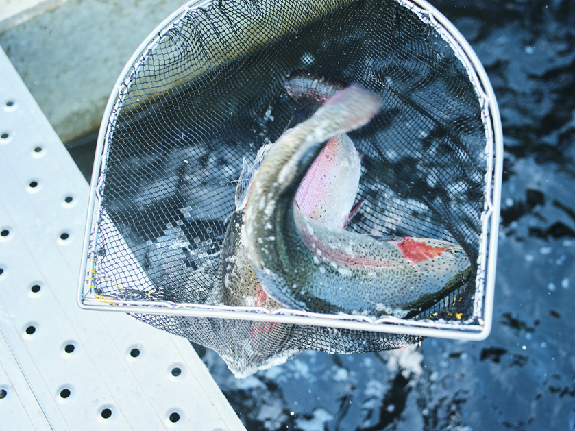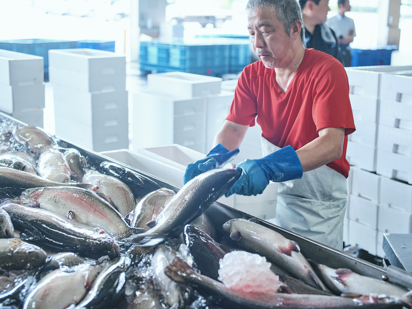 「現在は年間を通して品質、生産量とも安定供給が可能で、“このサーモンの旬は1年中です”とお伝えできるほどになりましたが、養殖場の設計といったハード面だけではなく、餌の質や量の試行錯誤、またストレスや病気から魚を守るための対策など、ソフトの面でもトライ&エラーを繰り返しながらここに辿りつきました」と吉田さん。