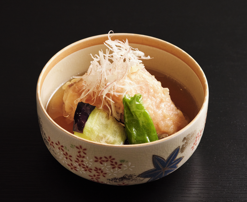 サーモンの揚げ出し(以下、コース料理より抜粋)