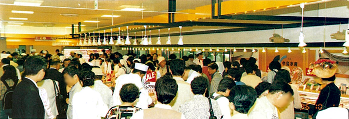 オープン当日、大勢のお客様でにぎわう横浜・上大岡店(1996年10月1日) |
