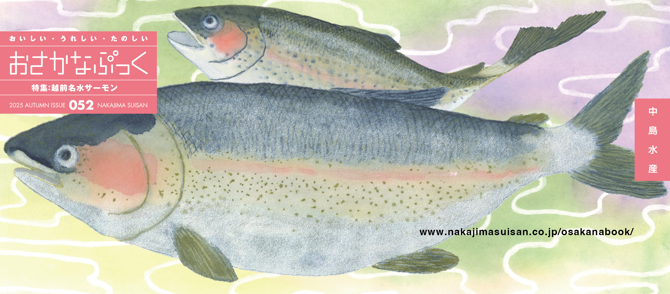 世界中から訪れるインバウンドは、日本の文化の魅力を体験したいという、強い期待を抱いて日本中を歩き回る。神社仏閣の歴史から、多様な食文化まで、ともかく堪能していただけているようだ。こうした国際化が進むなかで、「スシ」や「シンカンセン」は、今や国際通用語になっている。けれども今回特集の「サーモン」は、鮭と呼ばずにサーモンという。もちろんこれはトラウトサーモン種であるからだけれど、ほこりをもってサーモンと呼びたい特別な育て方であるのが自慢です。百名水に選ばれた山あいの湧水をふんだんにかけ流し、天然鮭を超える絶妙の環境と餌の管理によって育てた驚きのサーモンなのです。国際化の時代に、食生活に直結する食材を安心して、堪能していただくことこそ、中島水産の大きな目標なのであります。 (E)